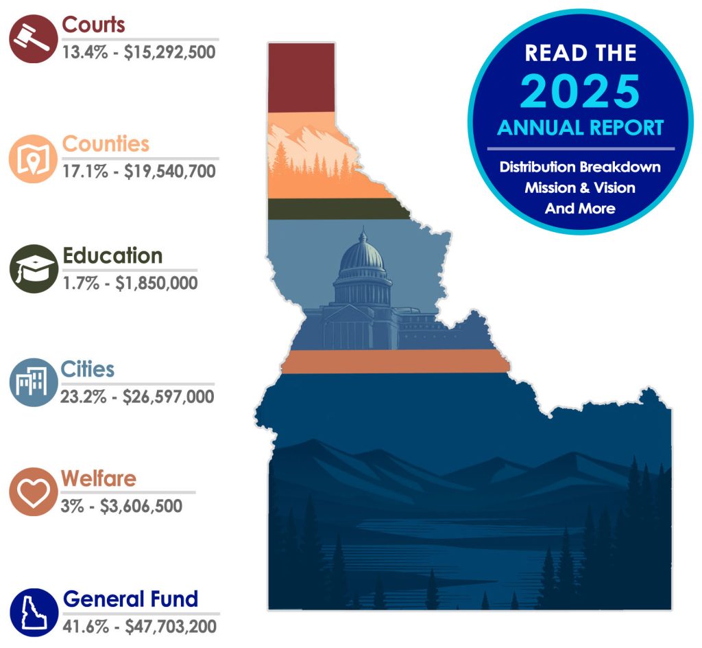 $114 Million Given Back to Idaho in 2025. From 2015 through 2025, the Idaho State Liquor Division has contributed nearly a billion dollars to the state, cities, and counties. We expect to distribute $1.2 billion over the next 10 years.